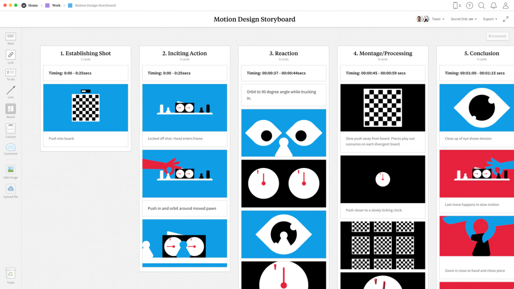 La création du script est la première étape de production d’un motion design. C’est le squelette de la vidéo motion design : le texte qui sera récité par la voix off et/ou écrit en sous-titres. Le script est déterminant pour la suite, donc soyez sûr de valider une version définitive avant de passer à l’étape suivante.