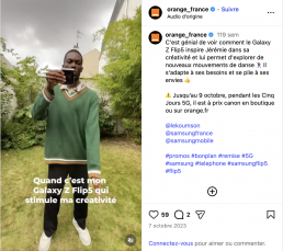comme Orange France qui sollicite des micros influenceurs pour mettre en valeur ses produits sur sa page Instagram.